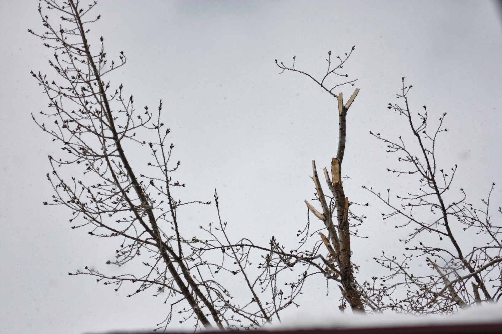 I've been looking again at all the branches around town that are wounded and dangling. I'm sure many of them won't leaf out and their destruction will become more apparent. Although we had our's professionally trimmed after the storm, we still have evidence of the brutality they all endured.